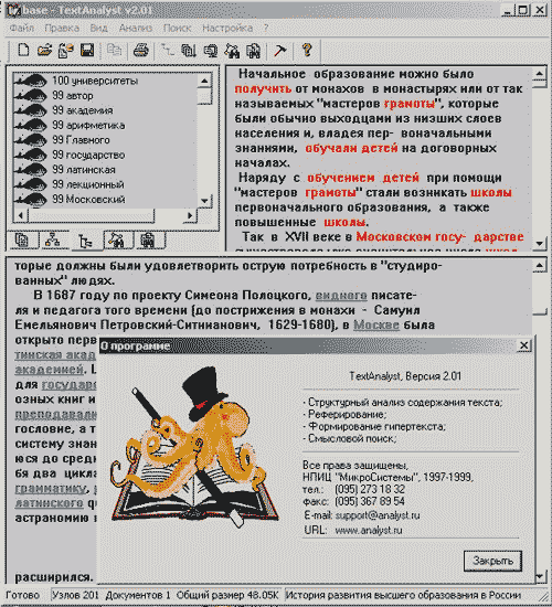 TextAnalyst ver. 2.0 – Программа для персонального анализа текстов (дополнение к Word 97/2000/XP/200